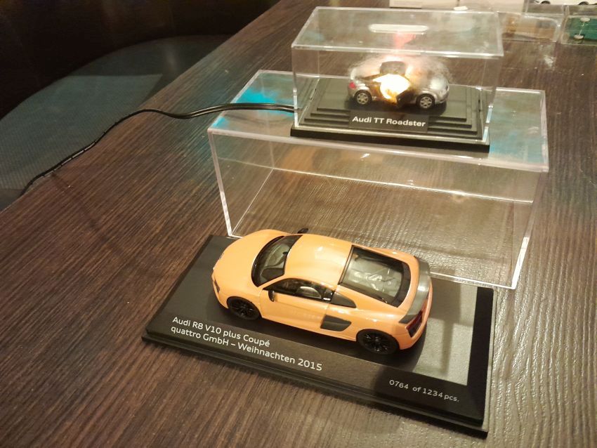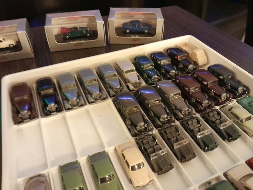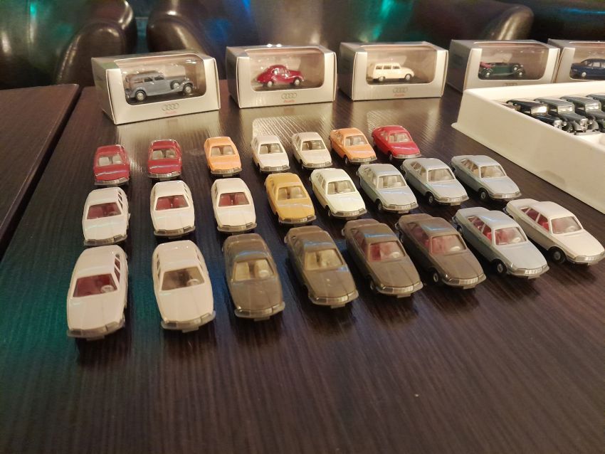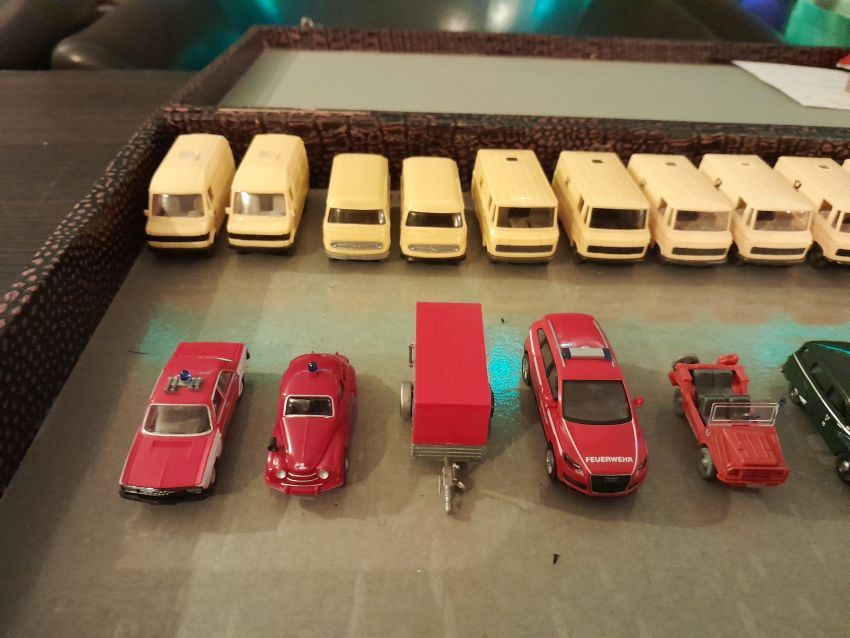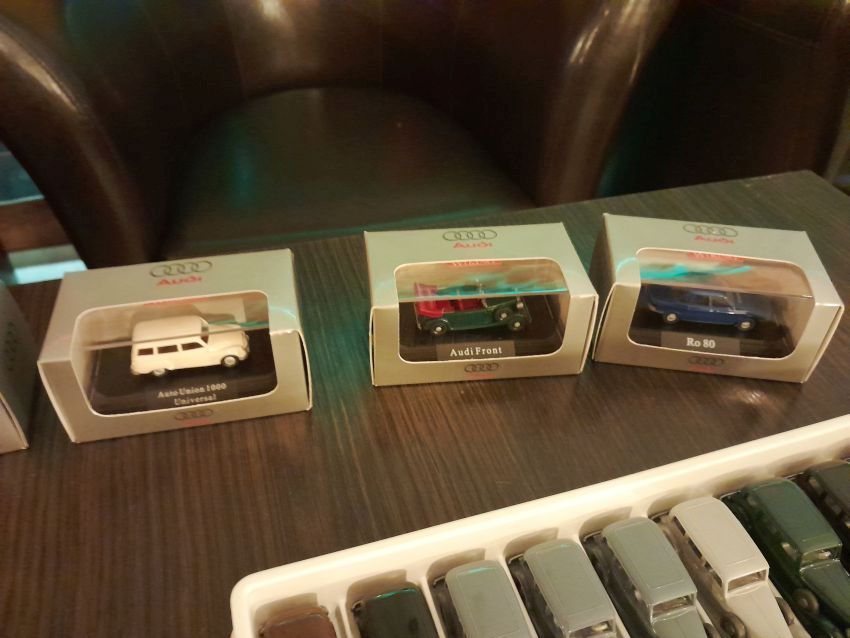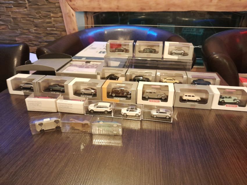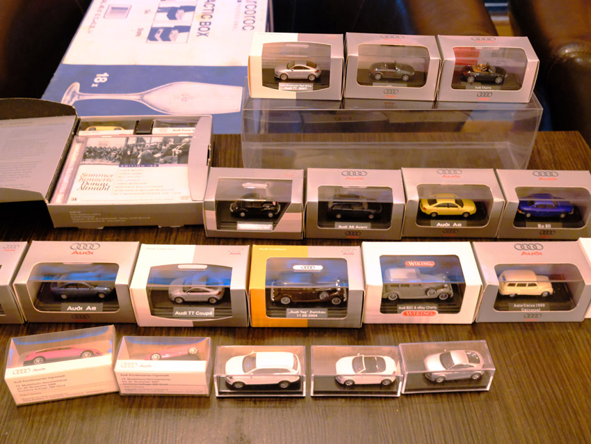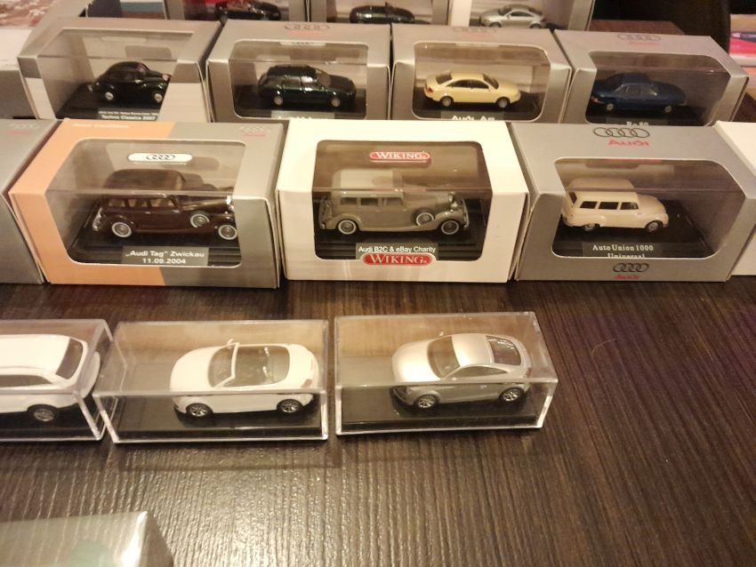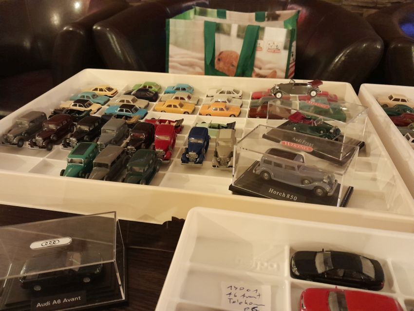 Audi: hier waren natürlich die modernen Modelle wie A4 Cabrio, A6 Avant, Q7, TT Coupe und TT Roadster mit entsprechenden Sonder- bzw. Werbemodellen von Audi gut vertreten. Charity-Modelle und die Modelle von der Automodellbörse in Ingolstadt. Audi 50, 80 und 100 waren in vielen Farbgebungen vertreten. Ein Sammler hatte auch entsprechende Blaulicht-Modelle ausgestellt. An Oldtimern hat Wiking lediglich das Audi Front Cabrio im Sortiment, das in allen Farben zu finden war. Uwe hat uns wieder mit einem beleuchteten Audi TT Roadster und einem seltenen Minichamps 1:43er Audi R8 V10 plus Coupe erfreut.