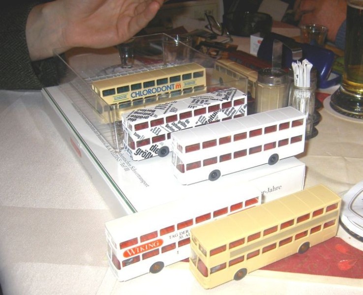 Teilnehmer waren Burglöwe, kneule, Senator 13 und Wiking007 - sowie Wiking Modelle. Burglöwe hatte einen sehr alten Trambus für Büssing in originaler Werbeschachtel von seinem Großvater dabei.
