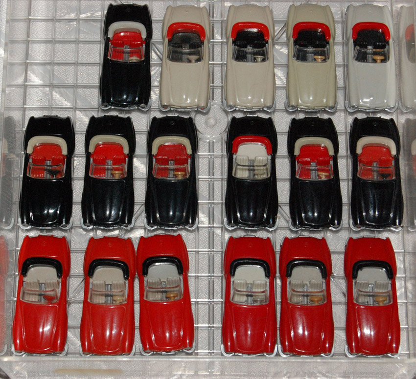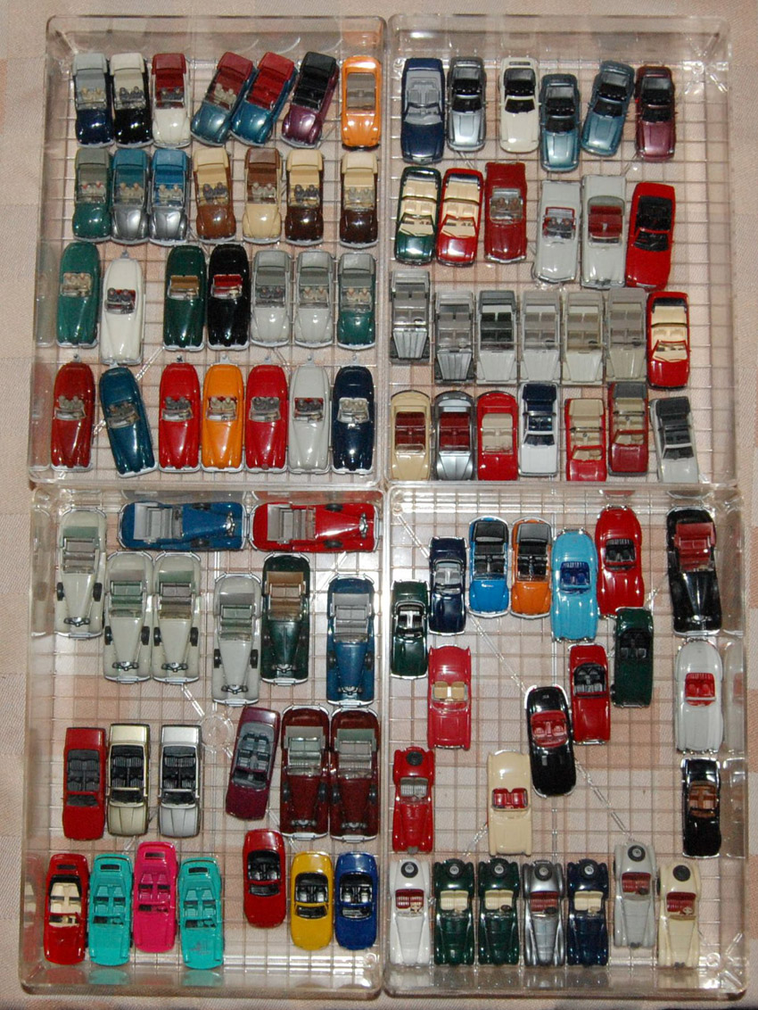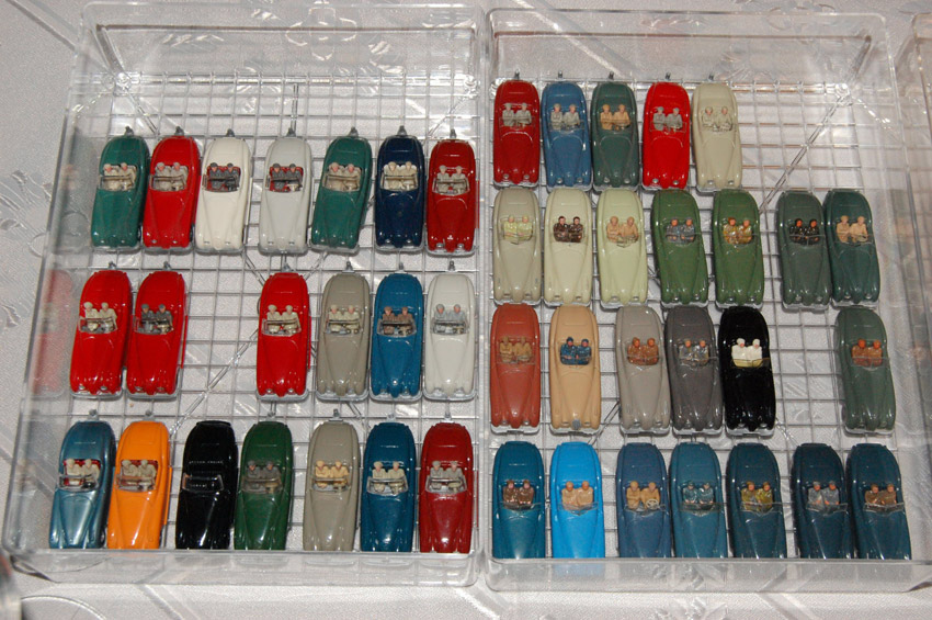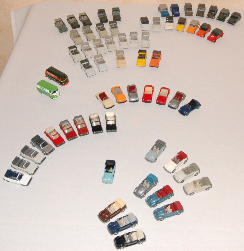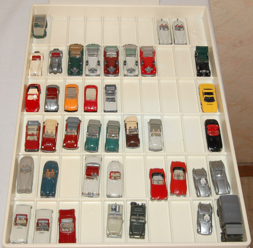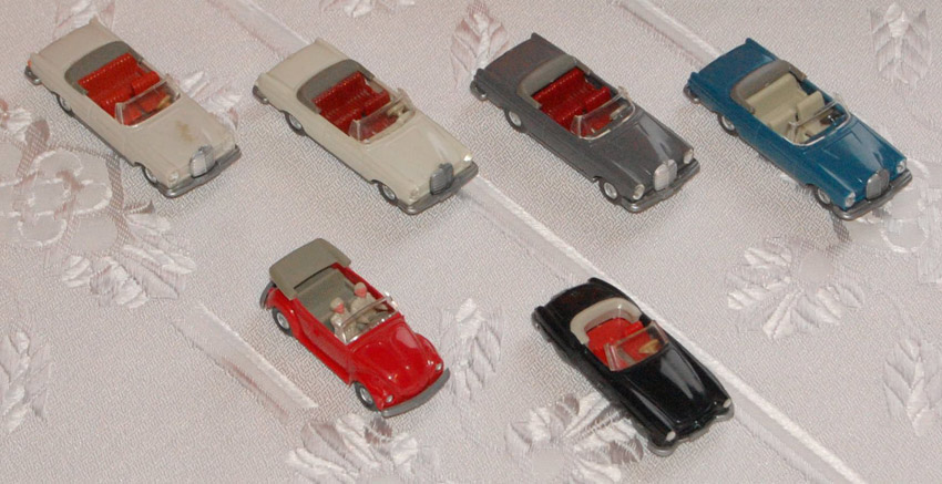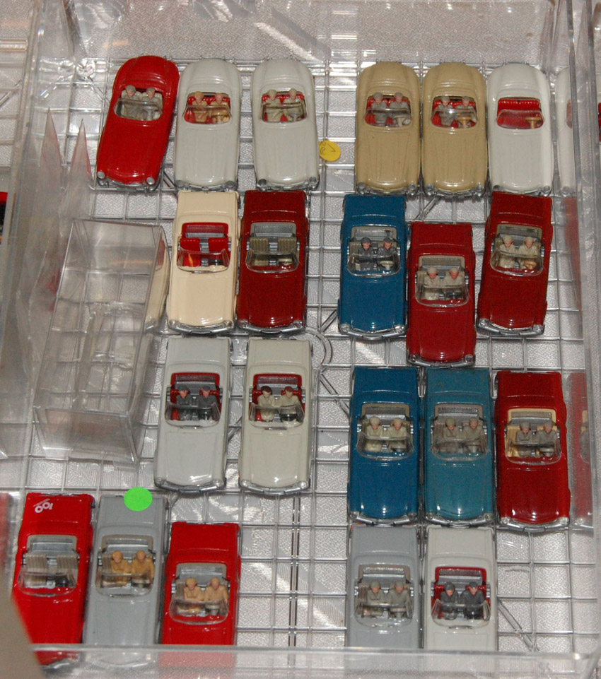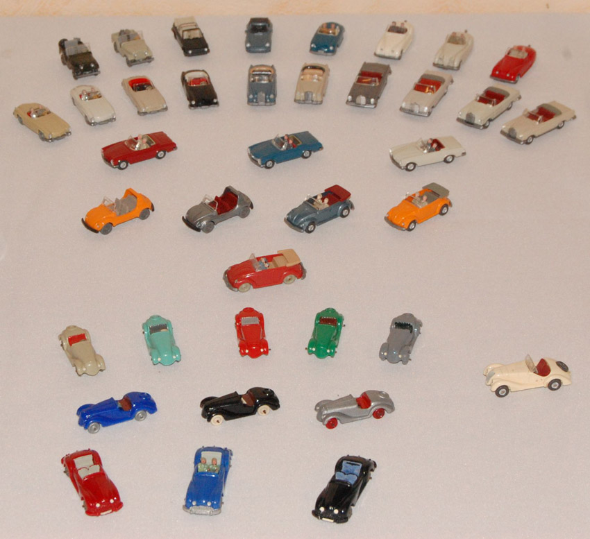 Thema war Cabrios. Der N-Bereich war auch vertreten, und natürlich auch der Maßstab 1zu40. Unser Sammeldealer hatte auch die Neuheiten Juni + August im Gepäck, welche auch ausgiebig begutachtet und auf Spieltauglichkeit getestet wurden. Natürlich durfte die Farbzuordnung 1:40 = 1:87 und zwei Modelle in einer Form nicht fehlen. An den fehlenden Jaguar Modellen sagte mir der Sammler, wir arbeiten (vielleicht(man kann ja nicht alles haben)) dran.