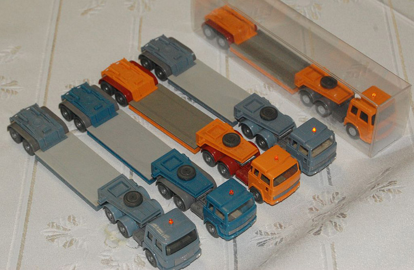 Das Thema war Tieflader (GK Nr. 503) von 1972 bis heute. Die Urform ist fast unverändert geblieben, es gab nur Detail Veränderungen. Achshalterung und an der kleinen „Aufbewahrungsbox“, mit und ohne Rückleuten am Aufbau und 503 Bodenprägung.