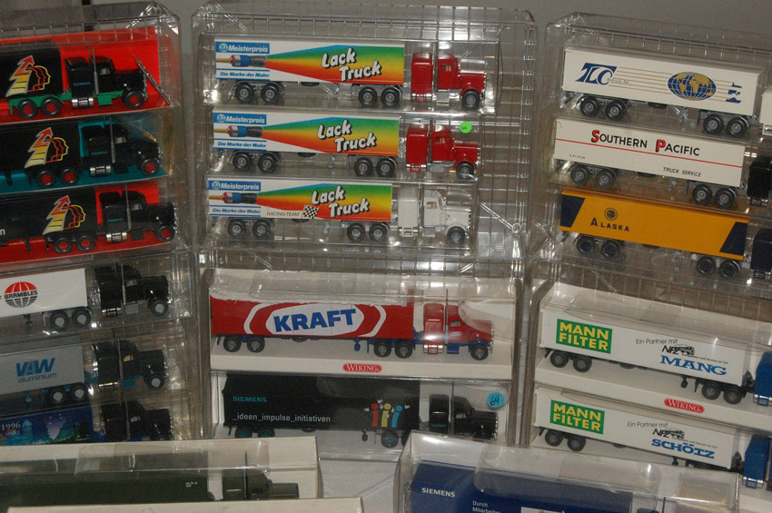 Die meisten Modelle, die gezeigt wurden, waren Peterbilts. Das Auffälligste waren die Werbemodelle in wunderschönen Varianten. Aber schaut selbst.
