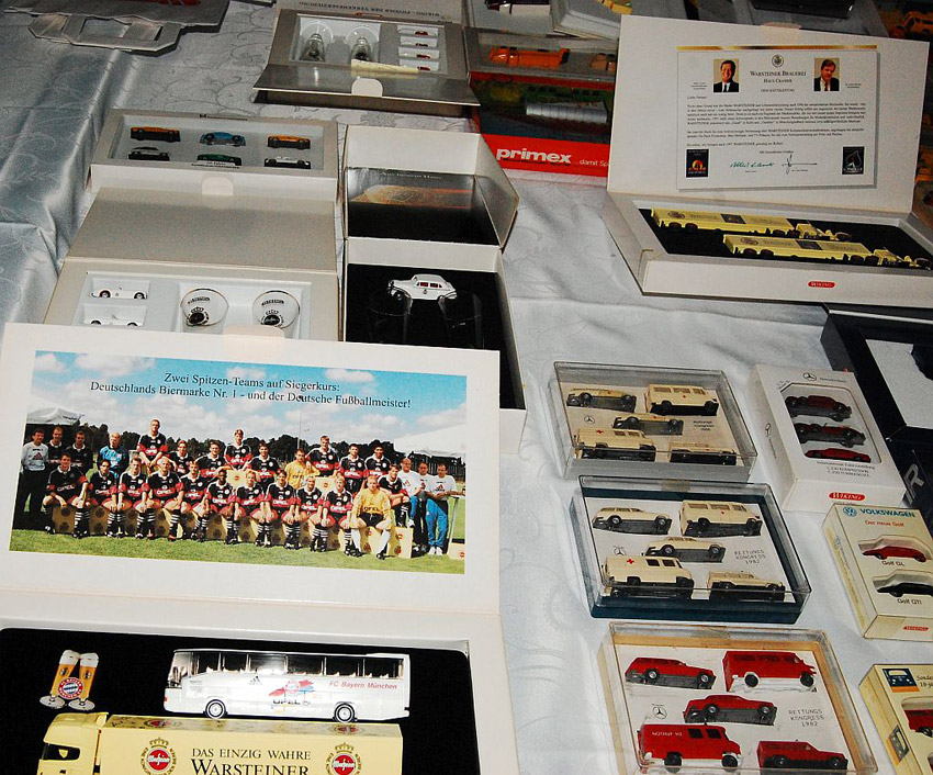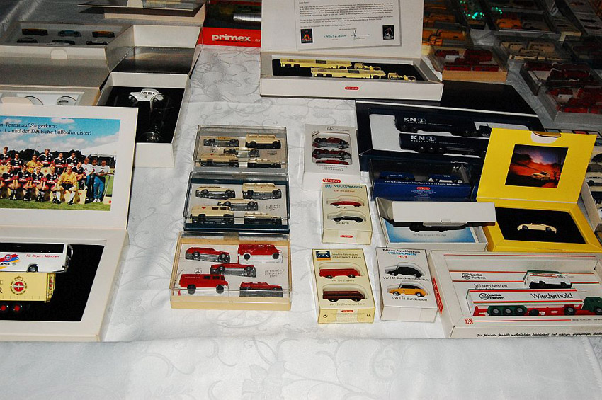 Die Geschenkpackungen waren reichlich vertreten, ein Billardtisch reichte nicht aus! Es waren 17 Sammler anwesend. Ein Sammler nahm sogar 360 km in Kauf, um uns zu besuchen.