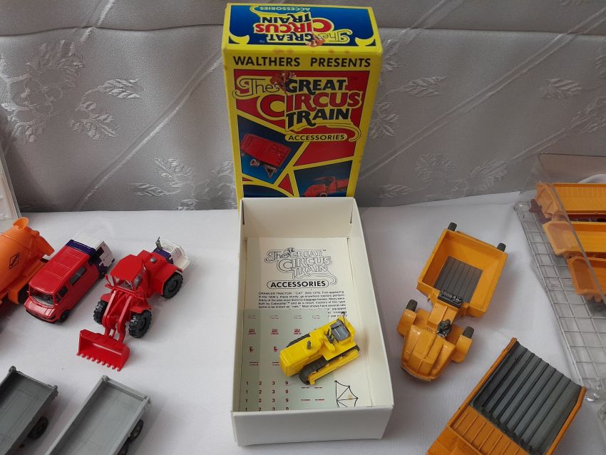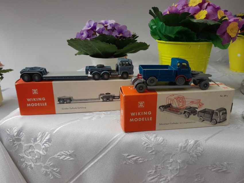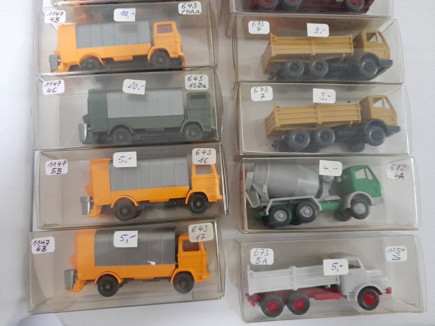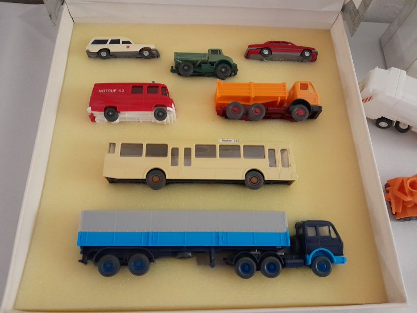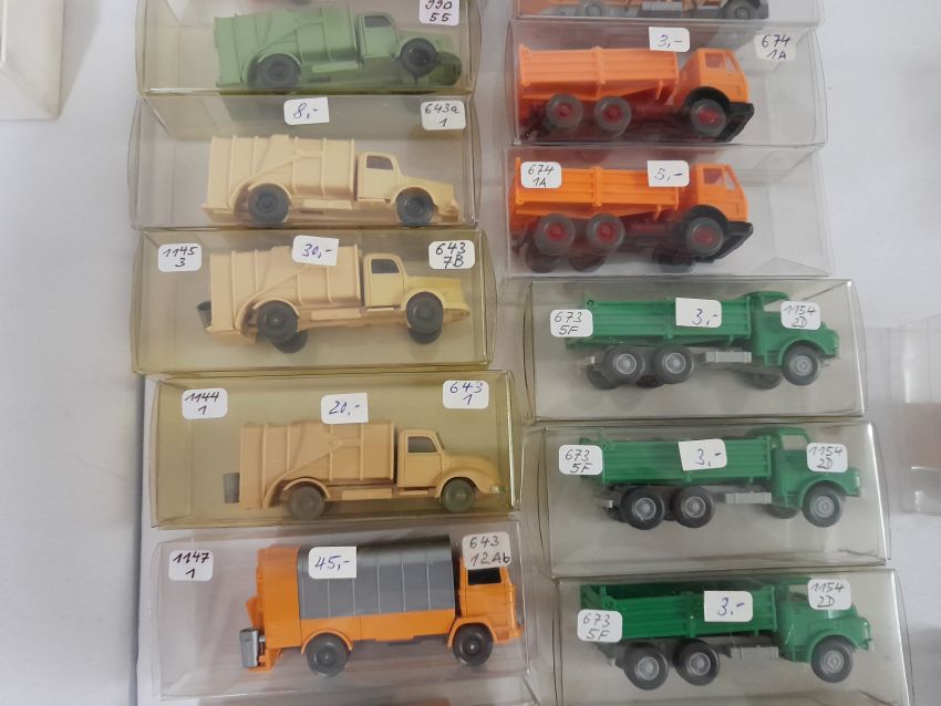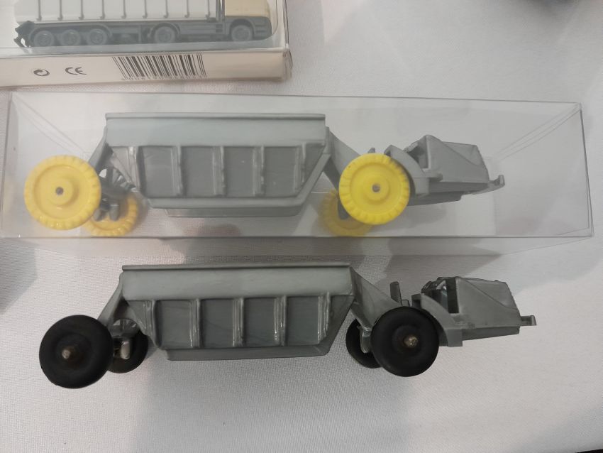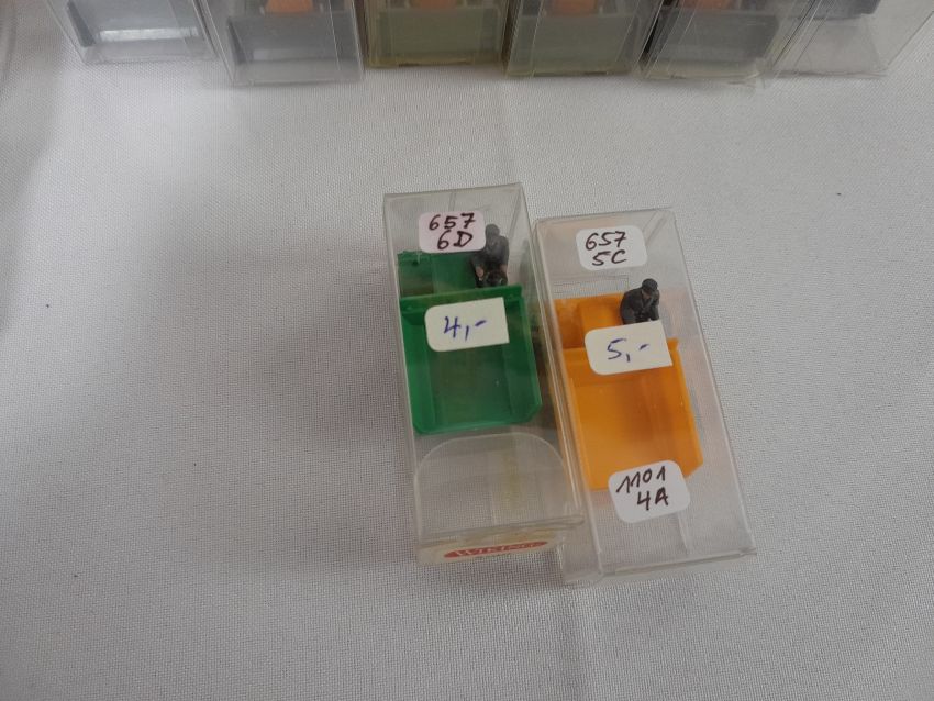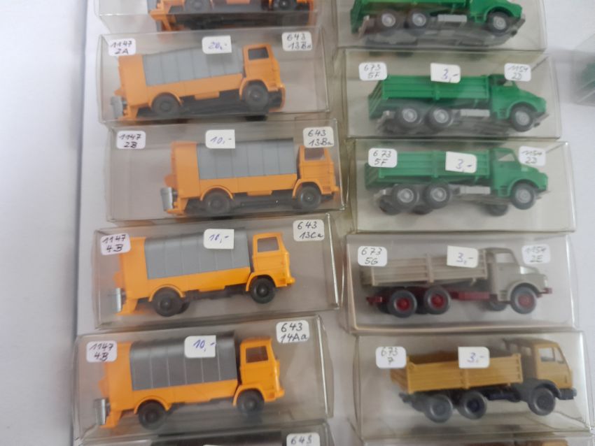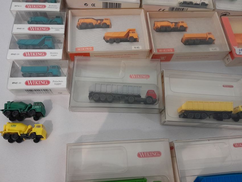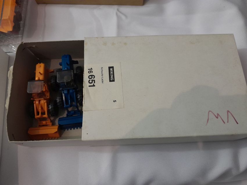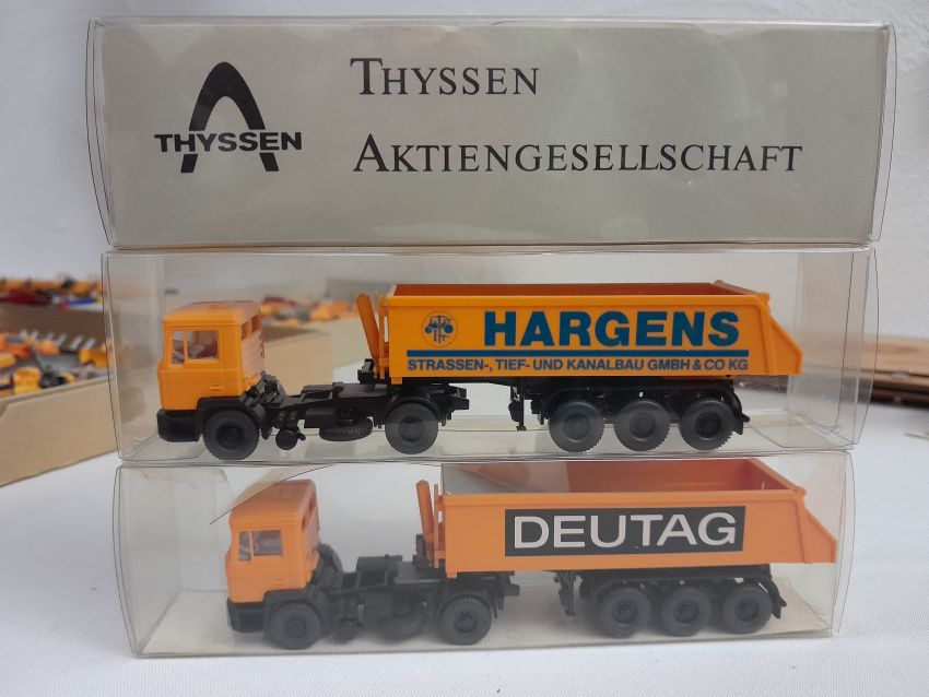 An Wiking Baufahrzeugen war alles vertreten, was das Sortiment hergibt. Lediglich der Menck Bagger im grossen Masstab war nicht dabei. Lutz hatte für seine N-Modelle einen Sandkasten mitgebracht, in dem die ganze Zeit gebaggert wurde. Es wurden wieder zahlreiche Werbe- und Sondermodelle mitgebracht, seltene Farbkombinationen waren zu bestaunen und auch wieder Modelle in Einzelteilen. Die Anzahl der ausgestellten Modelle ging in die Hunderte, was auch die vielen Bilder erklärt. Nehmt euch viel Zeit, um die Bilder ausgiebig zu betrachten. Einige Besonderheiten seien erwähnt: Henschel Readymix Betonmischer - im GK 2002 als Werbemodell, im GK 2003 als unbesetzt gelistet. Die 2-achsigen Magirus Muldenkipper sind seltene Farbkombinationen, die Baustoffwagen waren mit MB und Magirus Zugmaschinen vertreten, die sich mit unterschiedlich getönten Verglasungen und Chassis-Farbgebungen unterscheiden. Die Modelle in den Original-Verpackungen (drittletztes Bild) waren leider nicht vor Ort, da der Sammler kurzfristig aus privaten Gründen abgesagt hat. Ich wollte euch dieses Bild nicht vorenthalten.