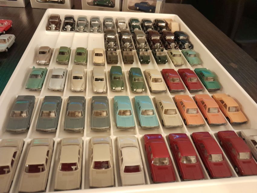 Horch: hier gibt es bei Wiking lediglich die Horch 850 Limousine, die ebenfalls in vielen Farben mitgebracht wurde. Es waren auch einige Audi-Sondermodelle zum Thema Horch zu entdecken. Unter der Artikelnummer 3850 hat ein solcher Horch 850 damals 3,30 DM gekostet.