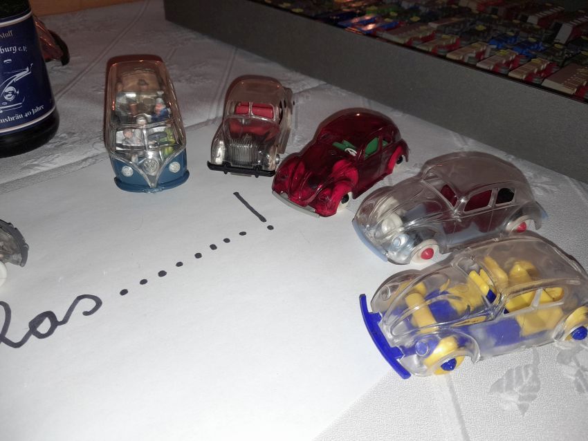 Und wie es sich für ein Sammlertreffen gehört, gab es auch wieder Einiges zu Kaufen und zu Tauschen. Es wurden viele interessante Gespräche geführt, lecker gegessen und das ein oder andere kalte bzw. warme Getränk geschlürft. Zum Naschen zwischendurch gab es leckere Süssigkeiten aus Peine, die mir Christoph rechtzeitig für diesen Abend zugeschickt hatte. Vielen Dank von allen Anwesenden:-))